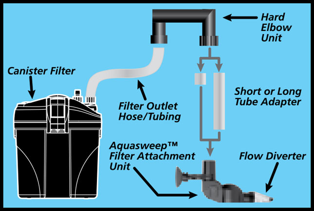Connect the AquaSweep™ Filter Attachment to your canister filter outlet hose for strong wave action in your aquarium. Can also be connected to an Aquarium pump/powerhead instead of a canister filter.